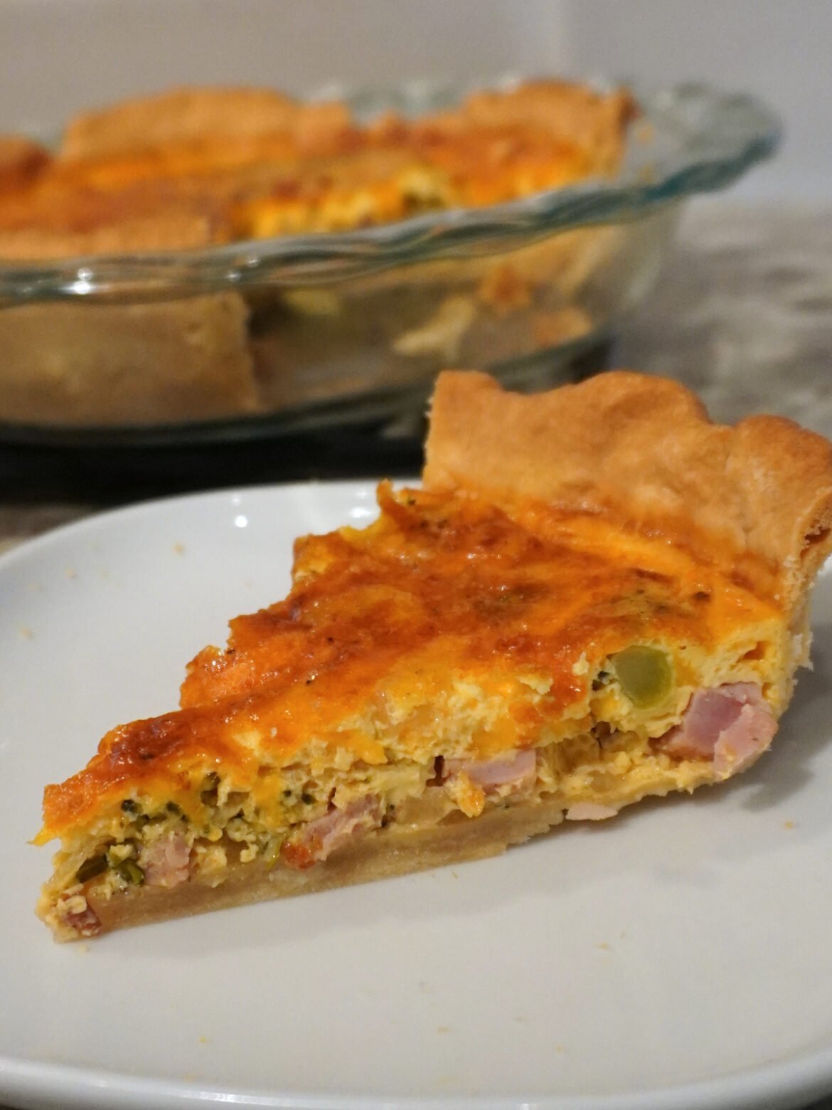 Quiche is a great recipe to have in your back pocket. It is pretty easy to bring together and is always a great way to use up leftover vegetables or meat. In this version I use some leftover ham we had from Easter along with some broccoli and onion as well.
