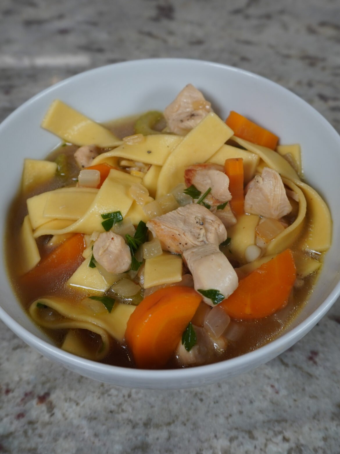 And to really take your chicken noodle soup to the next level try and add some fresh parsley in at the end. It will really brighten the soup up and bring some much needed freshness.